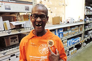 If you live in Philadelphia and have visited a Home Depot within the last decade, chances are you have met Pamela. Since 1998 Pamela — known by friends as Pam — has been employed full-time with the organization as a Store Associate. Pam takes pride in her job and enjoys working within the community; she has established a strong network of coworkers and friends who support her both personally and professionally. As a woman with a mild intellectual disability and cerebral palsy, Pam does not let her disability limit her potential in the workforce. Over the years she has taken on new leadership roles and has firmly established herself as a dedicated, reliable employee. In fact, over the years she has received numerous Employee of the Month awards and gifts in recognition of her hard work.